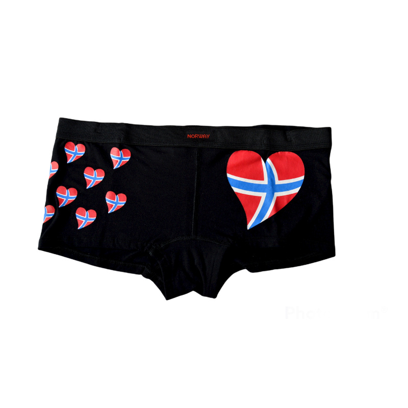 - Černé boxerky s norskými vlajkami ve tvaru srdce