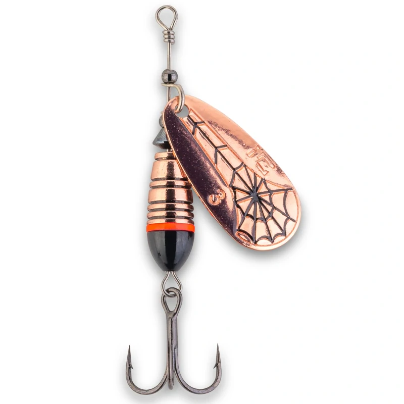 Crack Blade Spinner je postavený na mosazném těle a mosazném rotačním listu, což přináší výborné letové vlastnosti a přesné nahození. Při vedení vytváří výraznou tlakovou vlnu a současně vrací odlesky z různých úhlů, takže zůstává dobře čitelný i v proměnlivém světle. Rotační list se rozbíhá už při minimálním tahu, a třpytka je proto účinná i při pomalém vedení. O spolehlivé zaseknutí se stará extrémně ostrý trojháček Kona a kontrastní UV aktivní dekor dodává nástraze další vizuální impuls.