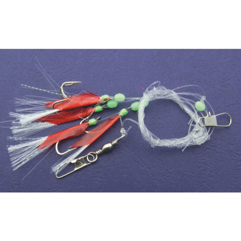 Systémy na lov sleďů jsou dostupné v mnoha atraktivních barvách a vyrobené z materiálu imitujícího rybí šupiny. V závislosti na provedení jsou osazeny pěti nebo šesti háčky. Informace o dostupných velikostech háčků a průměrech vlasců najdeš níže. Každý přívěsek obsahuje zelené korálky, které ve tmě svítí, což dále zvyšuje účinnost lovu.