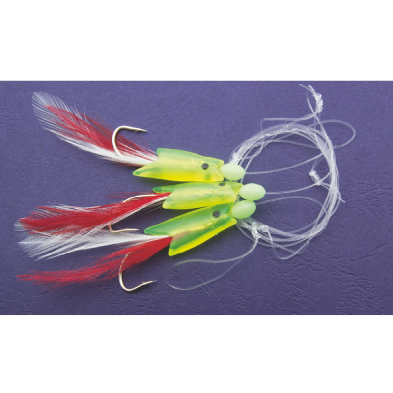 Treskové systémy jsou osazeny třemi nebo čtyřmi háčky podle konkrétního vzoru. Vlasec má průměr 0,6 mm nebo 0,7 mm. Přívěsky svým vzhledem připomínají přirozenou potravu tresky, jsou k dispozici v různých barvách a provedeních. Každý přívěsek je doplněn o zelené korálky.