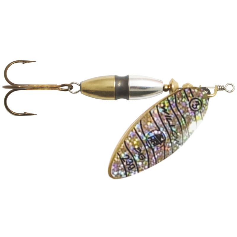 Rotační třpytka pro lov okounů, pstruhů a štik. Díky vysoké hmotnosti lítají tyto nástrahy opravdu daleko a narozdíl od ostatních třpytek se s nimi dá snadno pracovat i těsně nade dnem. Je určena do klidných řek, rybníků a přehrad. Točí se i při velmi pomalém tažení. Značkový VMC trojháček je velmi ostrý a pevný, nehrozí tedy, že by se ryba při záběru nepíchla.
