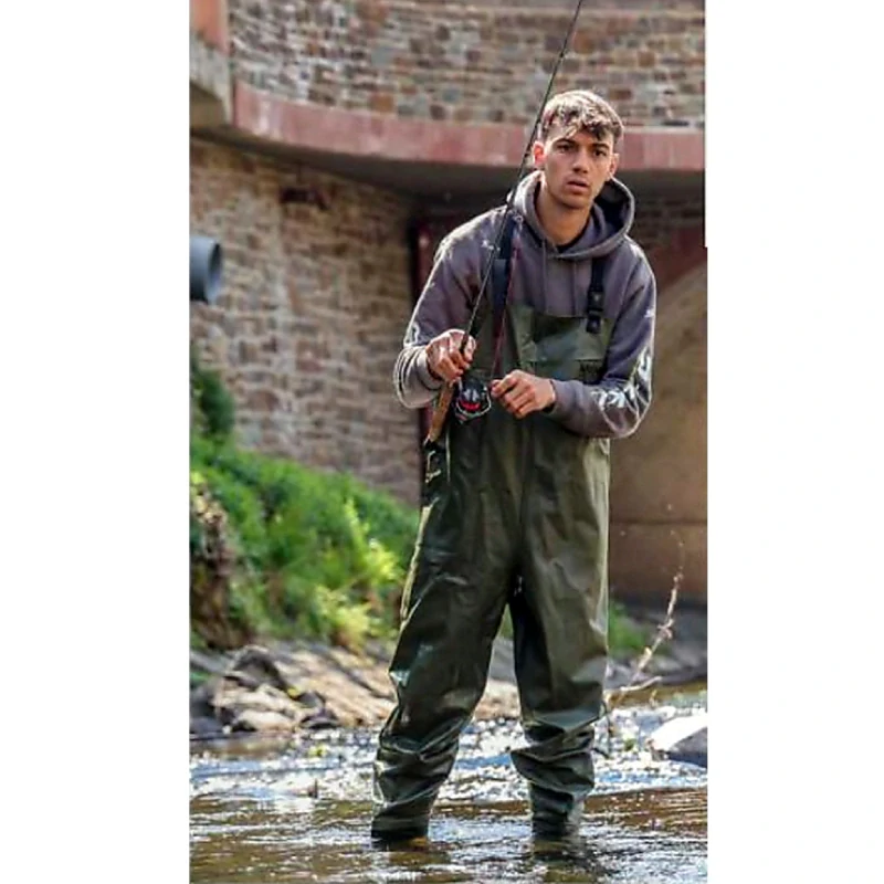 Tyto brodicí kalhoty Saenger z odolného PVC jsou stavěné na rychlé nasazení a jistý pohyb ve vodě. Součástí jsou napevno navařené PVC holínky s protiskluzovou, hrubě vzorkovanou profilovou podrážkou, která pomáhá udržet stabilitu i na kluzkém dně. Díky nastavitelným ramenním popruhům s kvalitními klipy si snadno doladíš pohodlné usazení a kalhoty drží přesně tam, kde mají. Pečlivě zpracované švy podtrhují odolnost pro běžné použití u rybníka, řeky i na zahradním jezírku.
