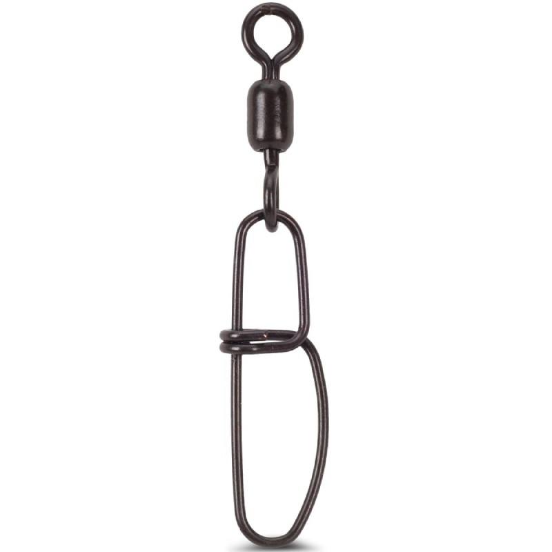 Nerezový obratlík s karabinou. Je součástí každé moderní montáže. Lze tak rychle reagovat na změny a v případě potřeby rychle vyměnit montáž.